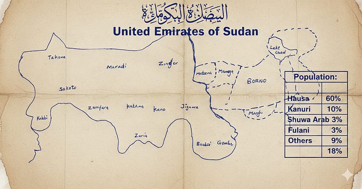 Perhaps comparable to the United Arab Emirates, the Sokoto Caliphate (along with other Emirates) had a Unity Treaty or charter with Kanem-Borno to form a single state.
